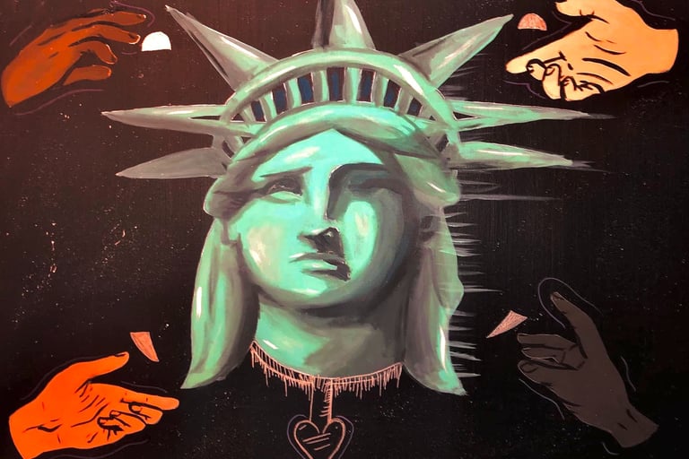 In 2022, I had the opportunity to conduct a live painting of something that I thought represented different cultures and inclusivity. The result was a painting of the Statue of Liberty surrounded by hands of different skin colors, representing inclusivity, diversity, and freedom. During this live painting, there were hundreds of people in the room, watching both myself paint, and the Met Gala hosts talking about the annual fundraiser.